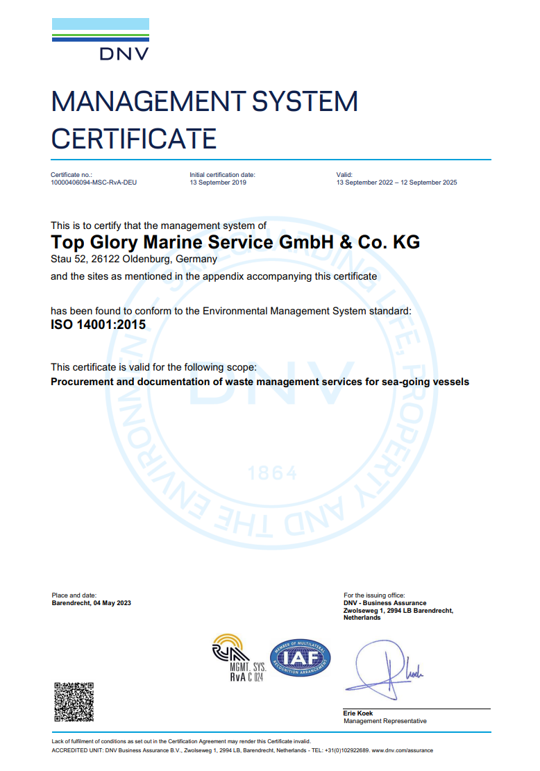 TGM provides disposal of exhaust gas cleaning residues /scrubber sludge in accordance to MARPOL Annex VI, which limits the main air pollutants contained in ships exhaust gas, including sulphur oxides (SOx).