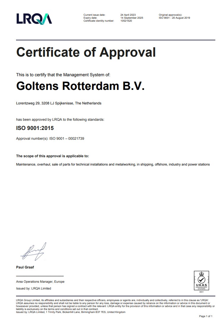 Major Casualties – Beyond routine maintenance, Goltens is known for its ability to restore engines from catastrophic casualties. Crankshaft, block and bedplate replacements are routine repair operations for Goltens and are done in the safest, most professional manner in the market. Through our global network of stations and suppliers, Goltens is very often able to offer fully inspected, class approved, reconditioned components at a significantly lower price than the cost of a new and usually faster than can be delivered from the OEM.